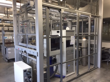 Three ventilated enclosures are used in the Shiflett lab to house experimental equipment. The enclosures minimize the risk of working with high pressure / temperature experiments and potentially hazardous gases.